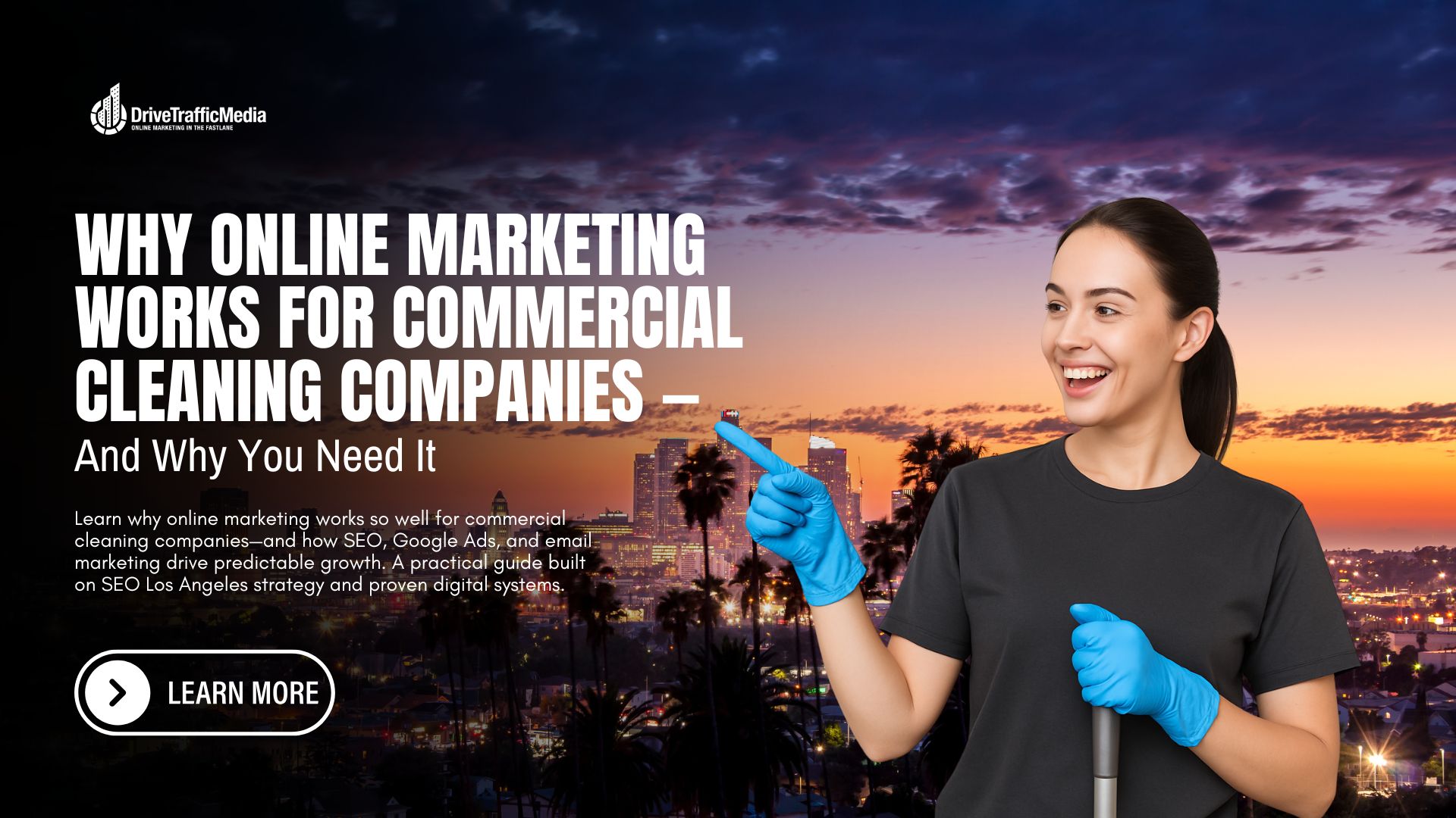 If your cleaning company isn’t investing in online marketing, you’re leaving recurring revenue on the table. Here’s why digital marketing works so effectively for commercial cleaning businesses—and how Drive Traffic Media helps companies dominate their markets safely and profitably.